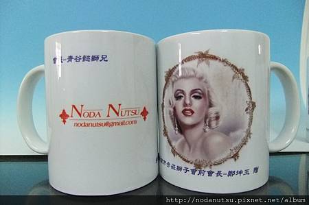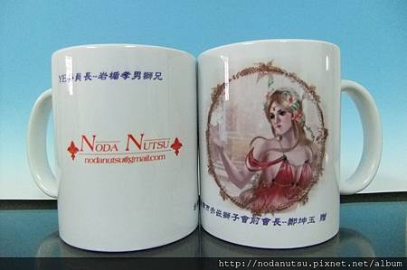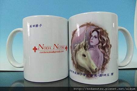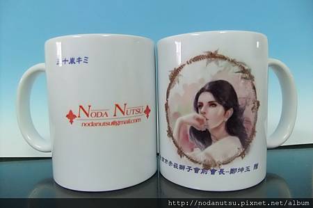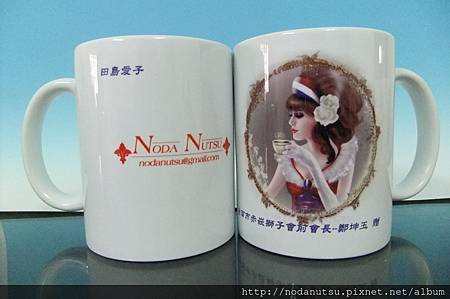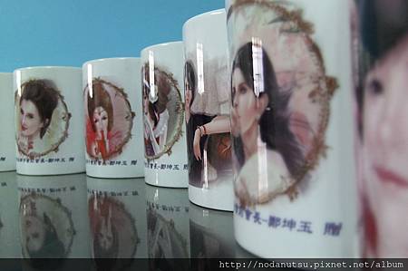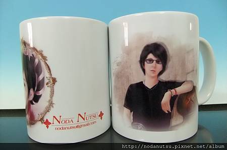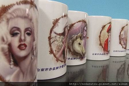每個馬克杯上皆各自印上受贈人的名字...且每個人都有各自專屬的圖案...希望收到這些禮物應該會很高興吧!